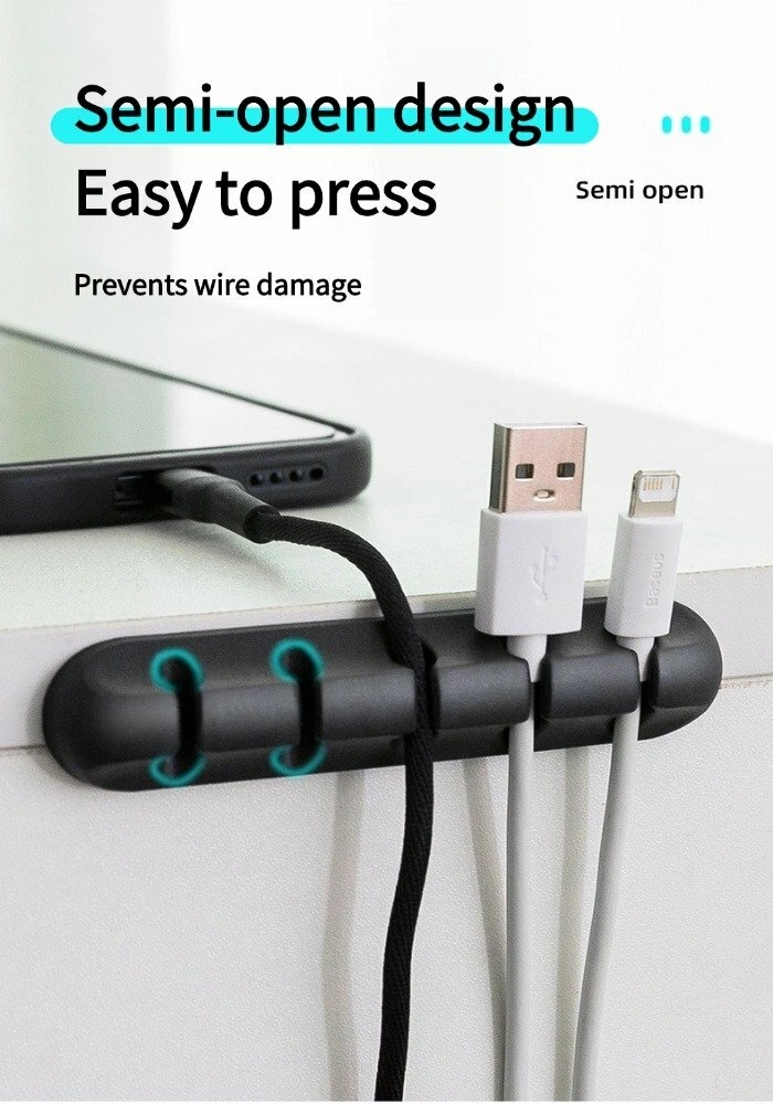 ⦁ Tidy Desk: Organizes messy charging and data cables, eliminating the clutter of tangled cables and piles, creating a clean and tidy desk and enhancing the overall look.