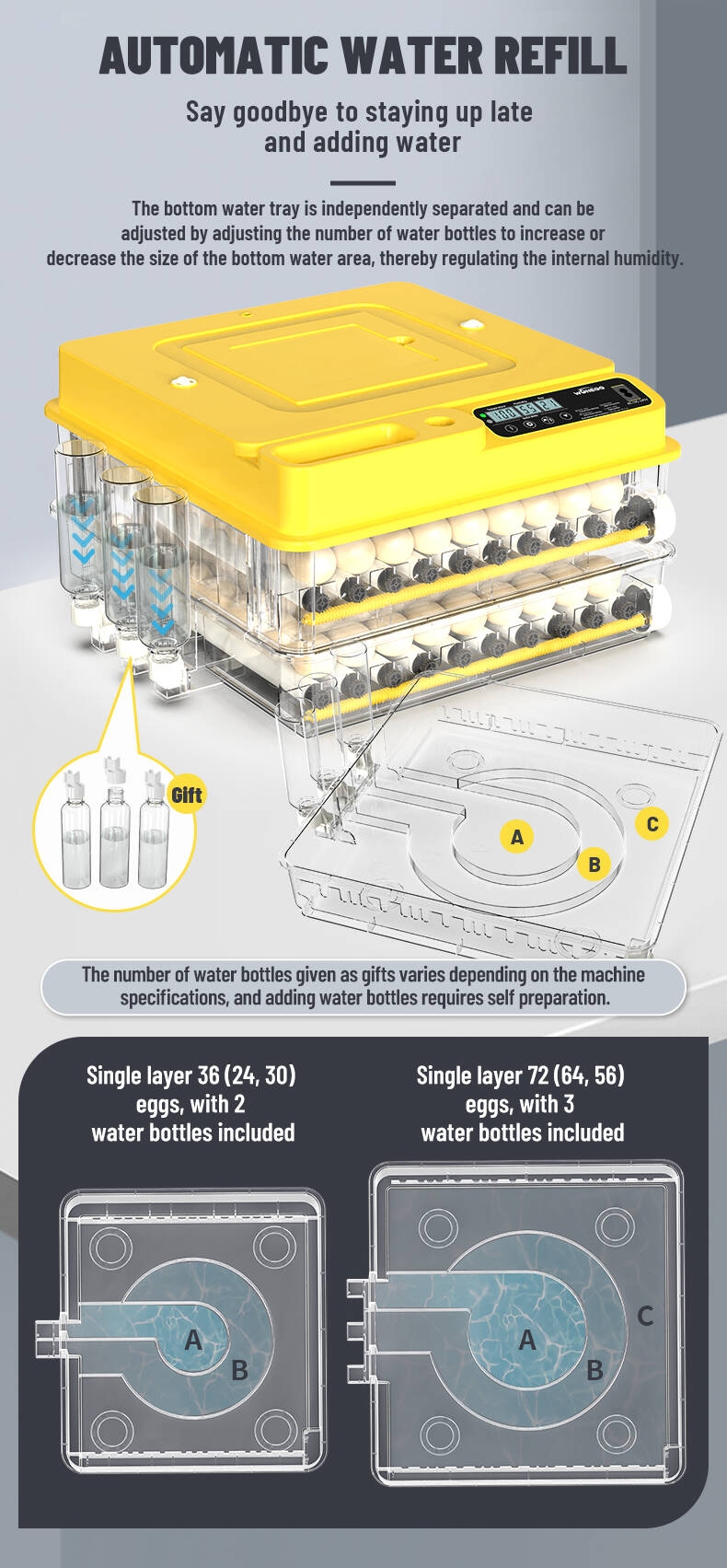 3. Automatic water refill : it can improve the hatching rate and free your hand ,save more energy.
