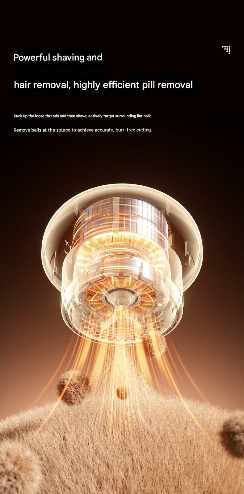 - High-capacity management: Featuring a convenient removable lid, the fabric shaver offers ample and accessible lint storage, designed to collect pilling and debris effortlessly. This feature ensures efficient operation over time and minimal maintenance, while being perfectly suited for revitalizing coloured carpets and knitted items. The pilling and debris collection system allows easy management of residues, promoting a