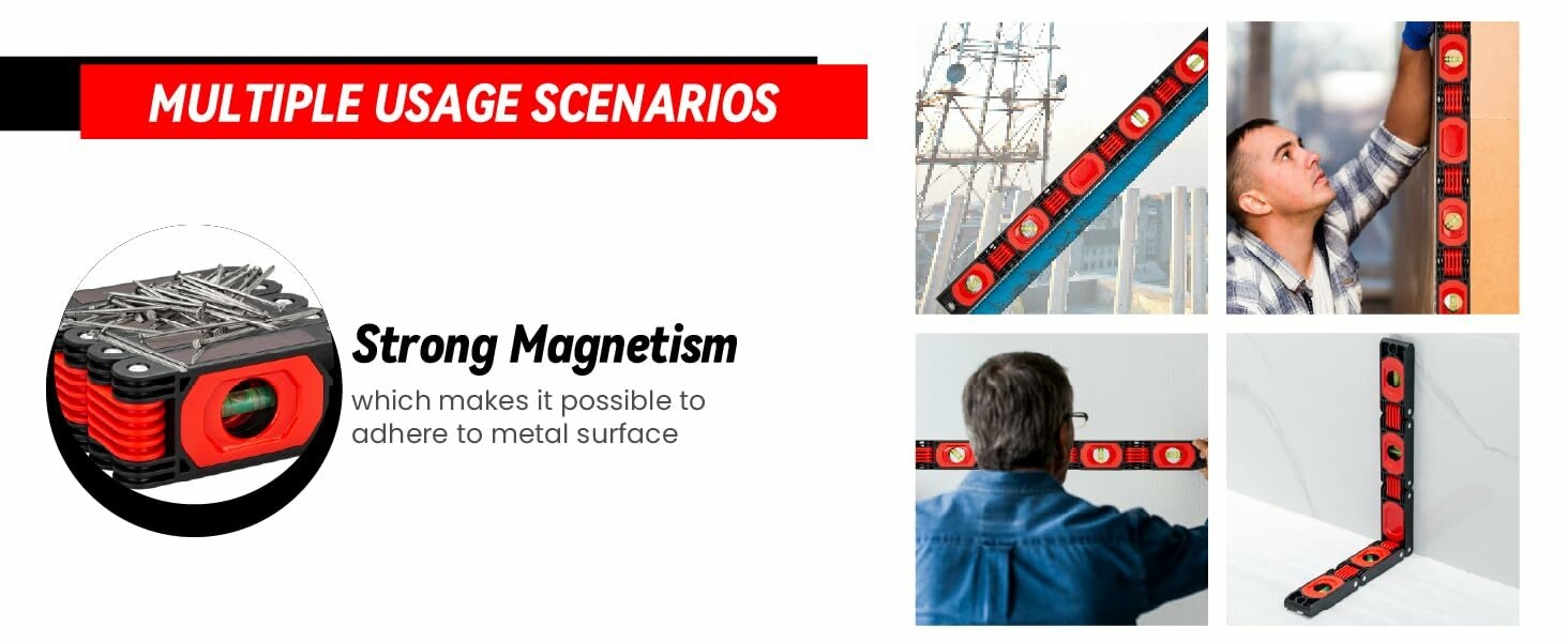 Precise Measurement with 4 Vials – 4 high-accuracy bubble vials provide horizontal, vertical, and 45° readings for reliable and precise results.