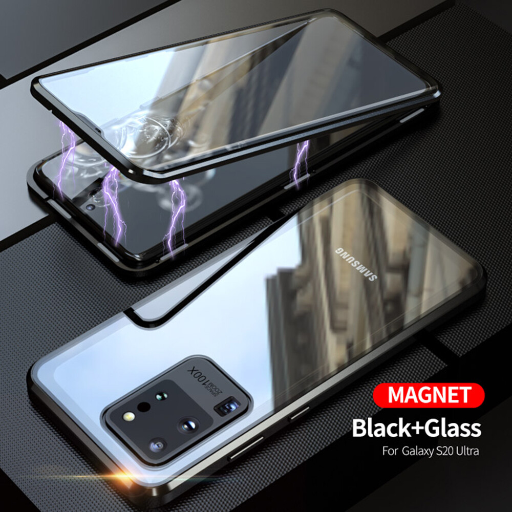 Full Body Protection with front and back tempered glass built-in Magnet Flip Cover for Samsung Galaxy S20 Ultra, Not for any other phone models.