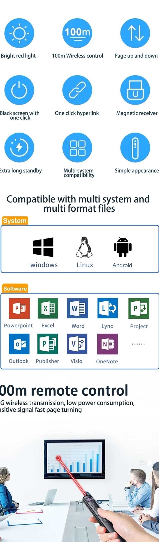 HomeElectronicsAccessories & SuppliesAudio & Video AccessoriesVideo Projector AccessoriesGENWP004 PowerPoint Remote Control Rechargeable Wireless Laser Presenter with Digital Display - Black