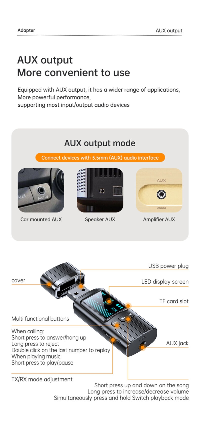 4.Super Stable Connection: Our Bluetooth audio adapter is fitted with a Bluetooth 5.4 chip for steady pairing, fast transmission and a wide signal range (33 feet).