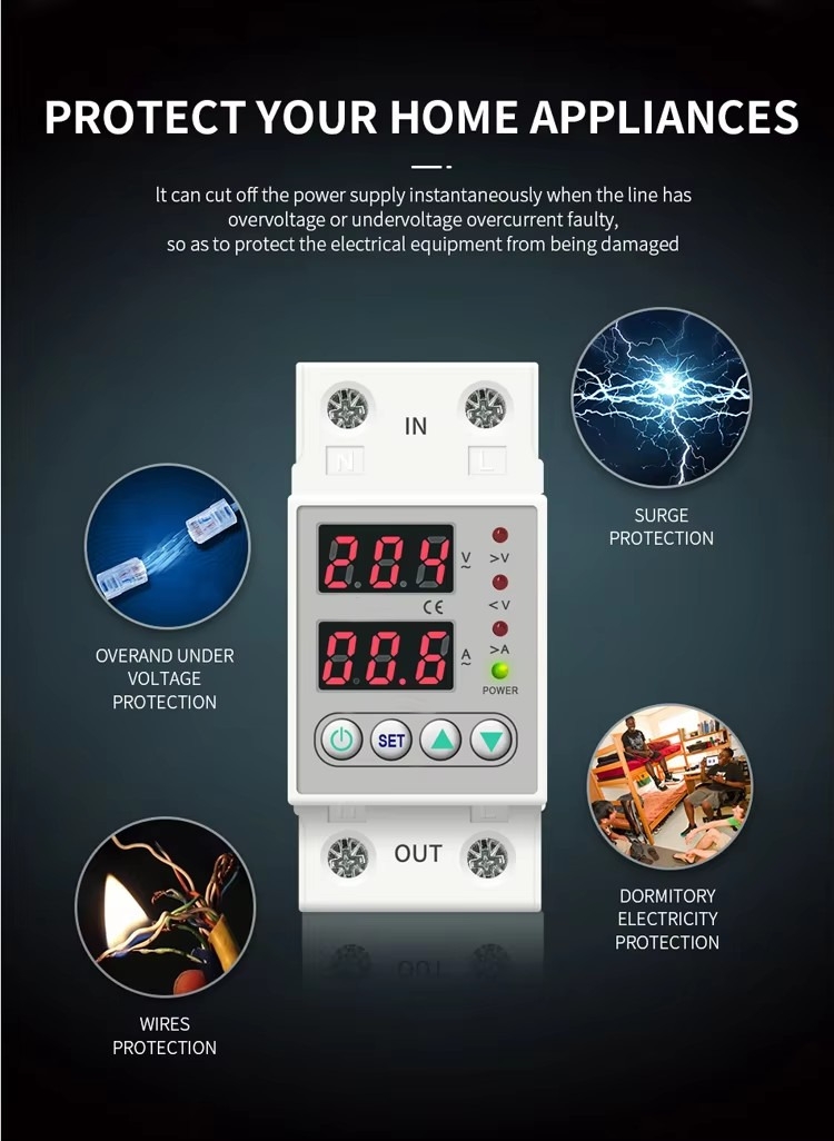 Intelligent self-reciprocating overvoltage protector 2P overvoltage undervoltage overcurrent lightning protection home appliance protector 220V 63A