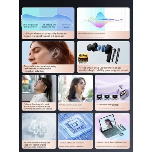 Make your day sound amazing: Get customized sound without ever looking at your phone. Use the controls on the Smart Charging Case™ of the JBL Live Beam 3 true wireless noise-cancelling earbuds to customize all their features without opening the JBL app on your device. Adjust volume and EQ, control your music, take phone calls, see messages—you can even customize the screensaver with your favorite photos. And that’s before you even get to enjoy the monumental JBL Signature Sound of the Live Beam 3 earbuds themselves. Best-in-class True Adaptive Noise Cancelling tunes out distractions. JBL Spatial Sound makes movies and music truly immersive. And if you have to take a call, 6 mics ensure perfect sound quality even in the noisiest surroundings. All this plus a 48-hour charge: 12 hours in the buds* and another 36 in the case—and they can charge wirelessly. The charging case features a loop to attach a lanyard for even more convenience. Great sound has never been simpler. (*with ANC off)