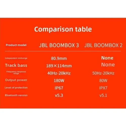 Strong, bold design: We've updated the sleek, iconic JBL silhouette. With twin sidecaps and a sturdy metal handle with an eye-catching orange silicone grip, you can take your music—and your style—anywhere. is committed to more sustainable, earth-friendly packaging. That's why the Boombox 3 comes in a recyclable paper-based box, including the inner tray, with an exterior printed with soy ink.