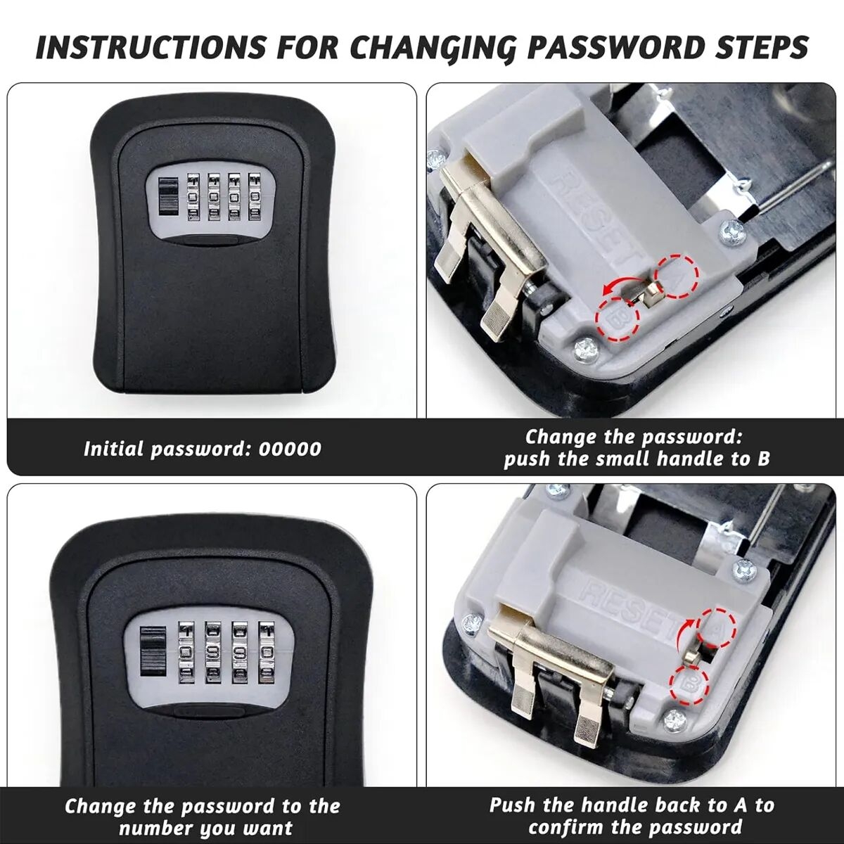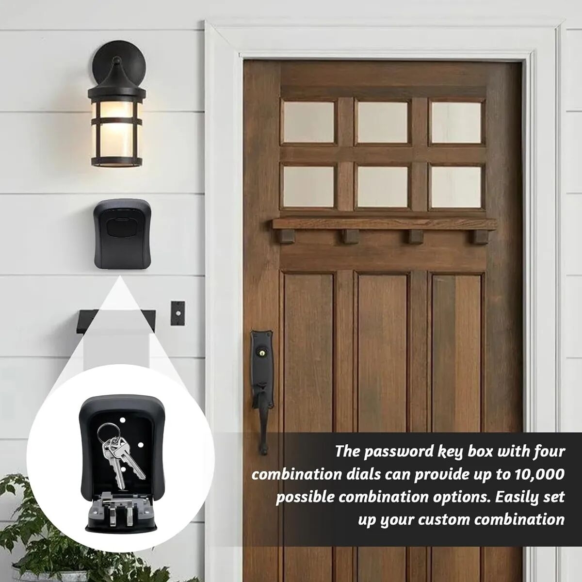 【SAFE AND DURABLE】: This key lock box with 4-digit code that allows you to set your own combo code with 10000 choices, which ensure security and your keys safe. It is tightly sealed and waterproof, durable enough for house key and outside key storage