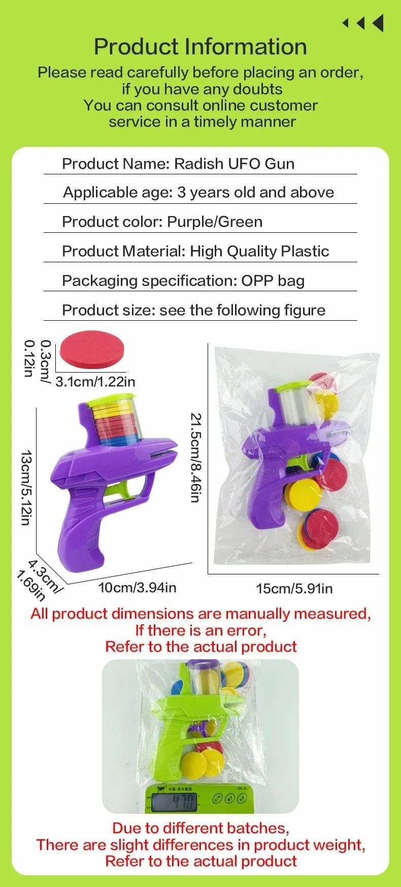 Packing List:1pc Carrot Flying Disc Launcher + 15 pcs