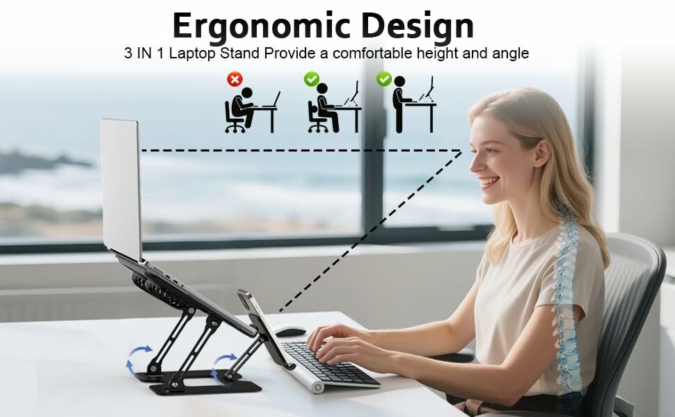 - Double device compatibility and ergonomics allow simultaneous cooling of laptops and phones while promoting healthier postures.