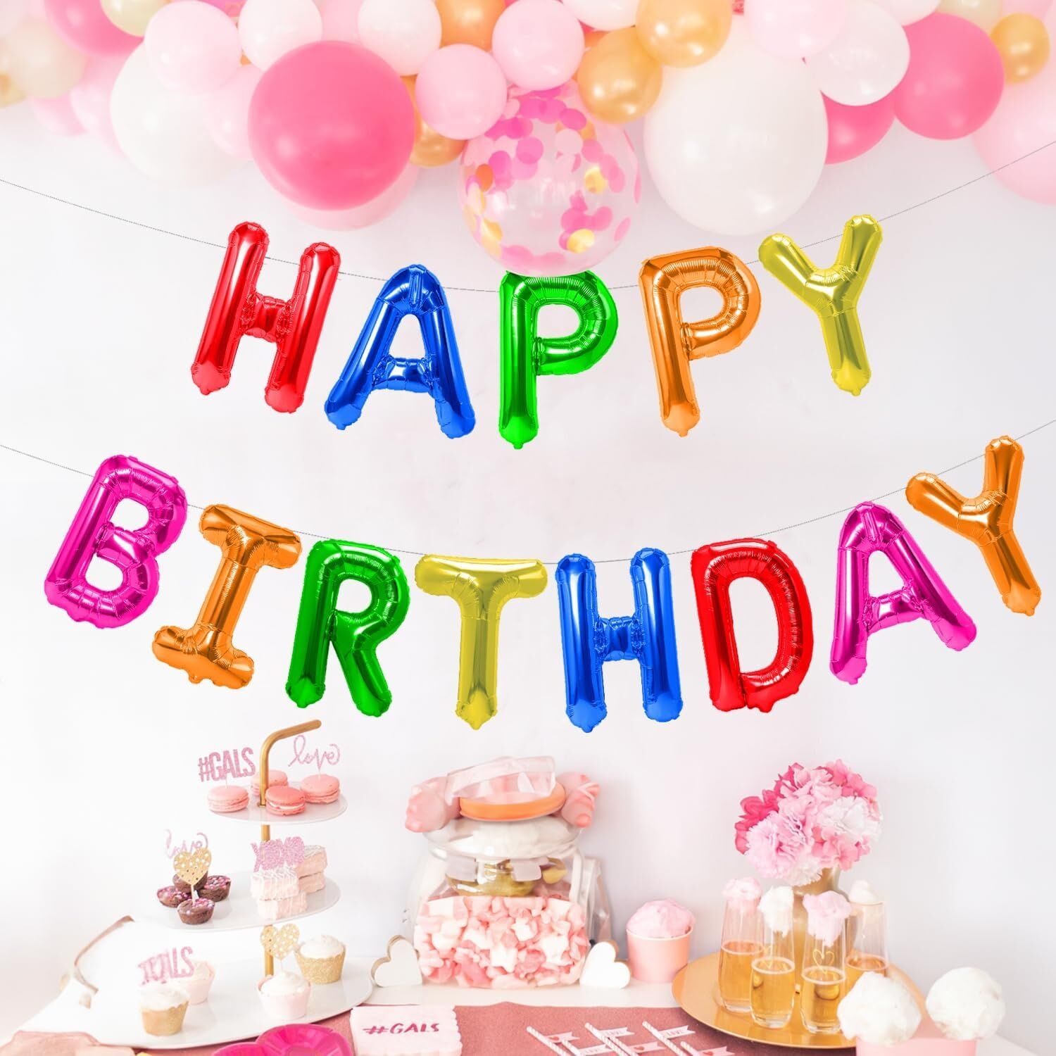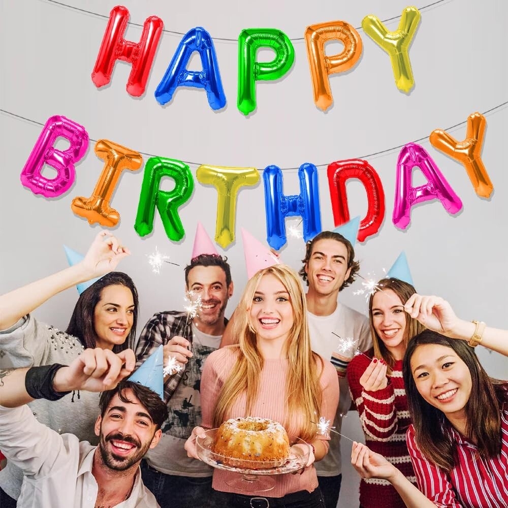 Beautiful and Colorful Design: A complete "HAPPY BIRTHDAY" foil balloon set in a variety of bright, vibrant colors to make your event shine.