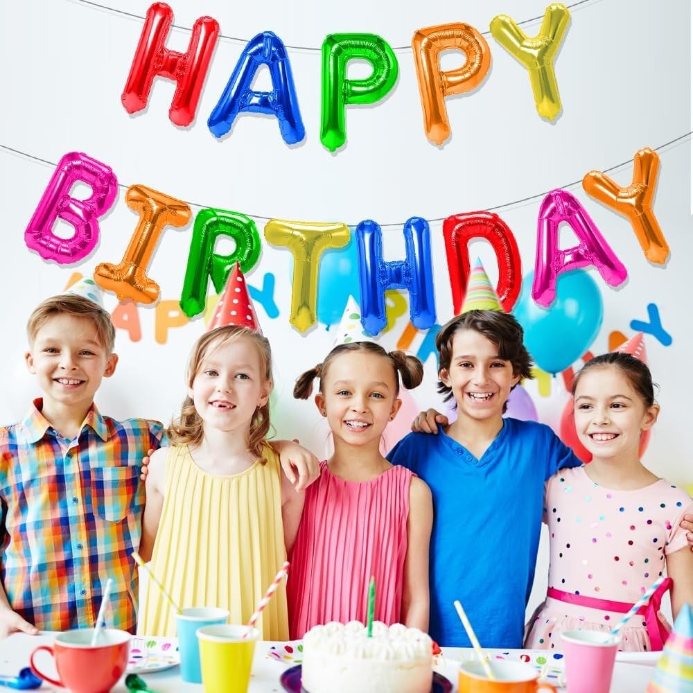 Make your birthday party unforgettable with this colorful foil balloon set! It includes all letters to spell “HAPPY BIRTHDAY”, creating a vibrant centerpiece that instantly brightens your celebration. Each balloon measures 16 inches and is made from durable, non-toxic aluminum foil, ensuring long-lasting shine and safe use for kids and adults alike.