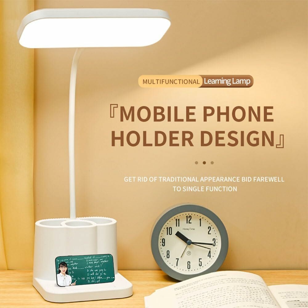 【Multifunctional Design】 3-in-1 Multifunctional small desk lamp with Night Light, Cell Phone Holder and Pen Holder design is fully functional, you can conveniently place stationery, small items, etc. to reduce desktop space or organize your messy desktop; Night Light design accompanies you to sleep peacefully every night; Cell Phone Holder design is convenient for watching videos. This desk light is small and doesn't take up much space, perfect for use in home office, bedrooms, study rooms.