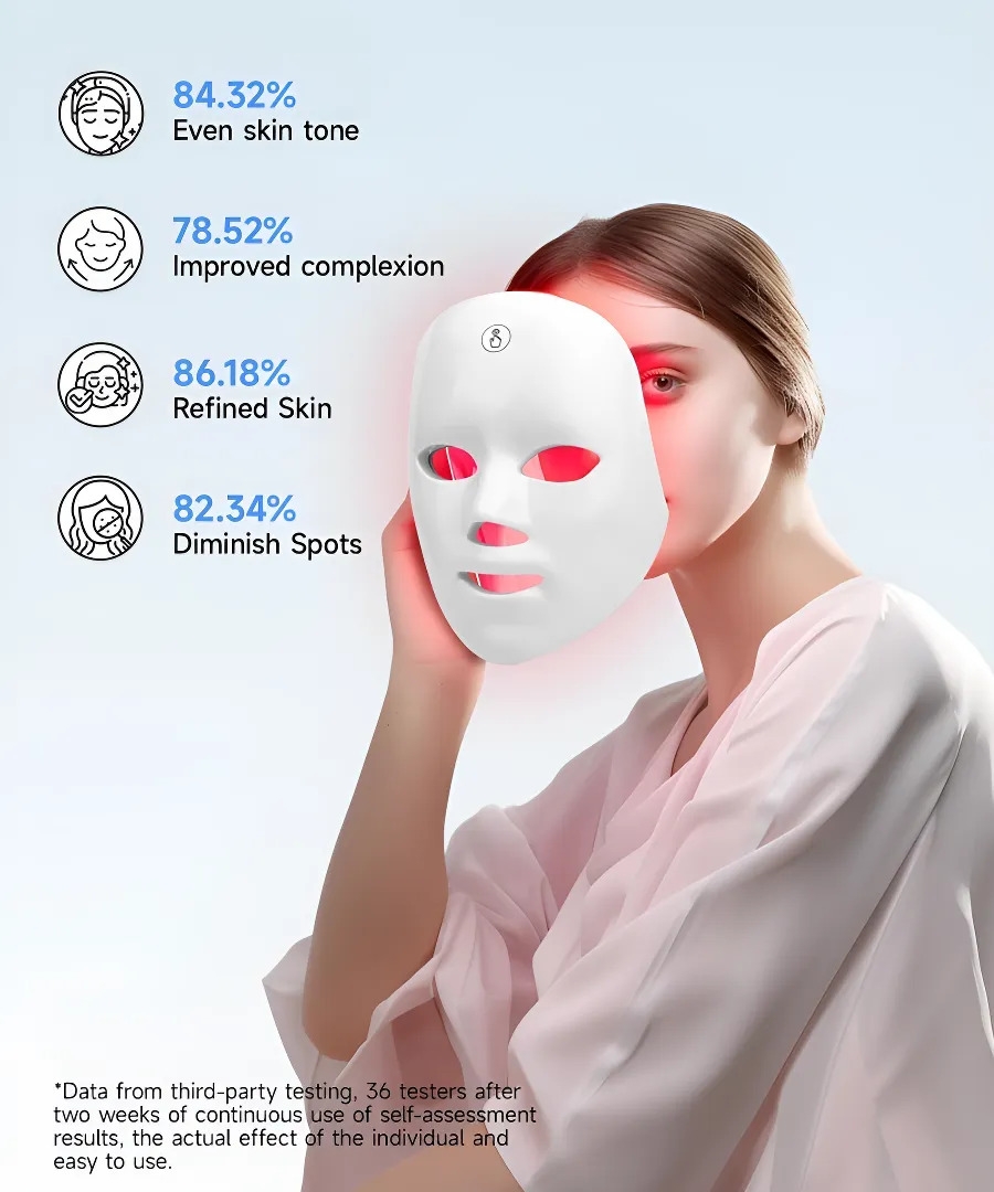 【7-Colors LED Skincare Mask】 Our LED facial mask offers 7 adjustable light modes (red, blue, yellow, green, purple, cyan, white) to meet skincare needs of men and women with different skin types, and offering a relaxing at-home skincare experience for both men and women.