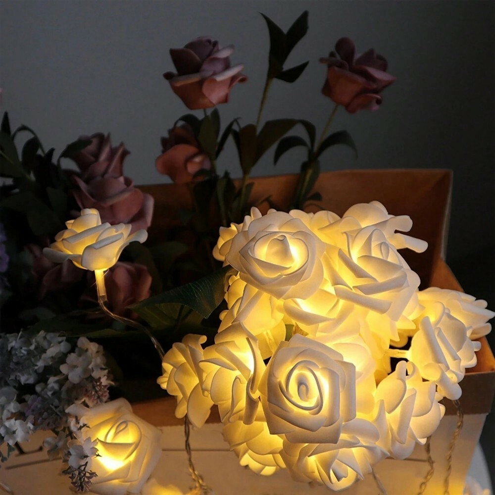 - Description:The 20 LED flower lights are designed with rose-shaped, integrating rose and led lights to save you installation time. The warm light emitted by the flower lights will add charm to indoor spaces, the lifelike rose to enliven your roomperfect for use in classrooms, on doors, or on fireplace.