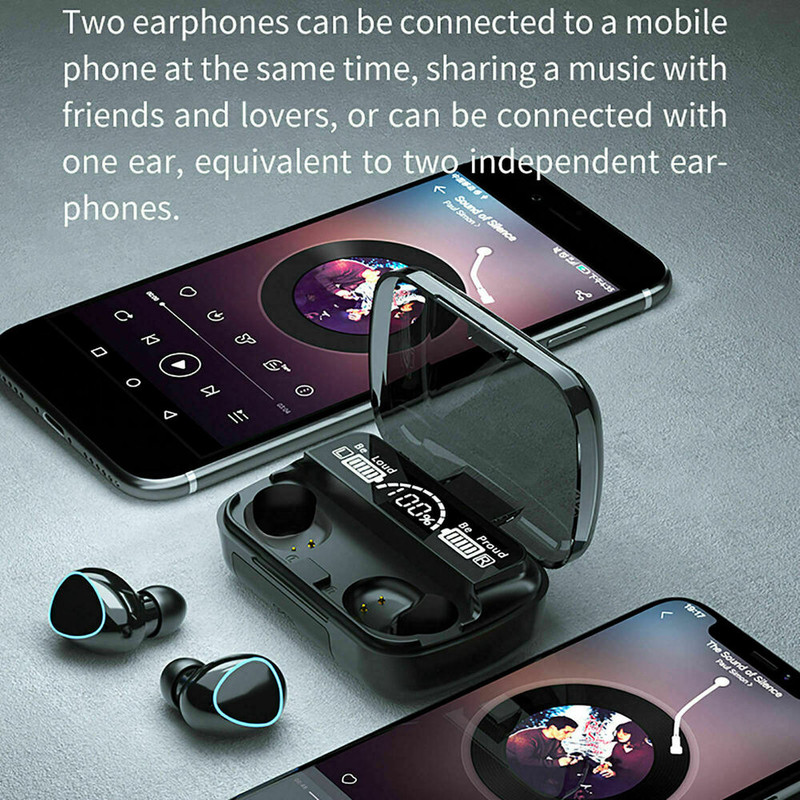 2000mAh charging case can full charge 2 earphones around 5 times, offer more 24 Hours music time.