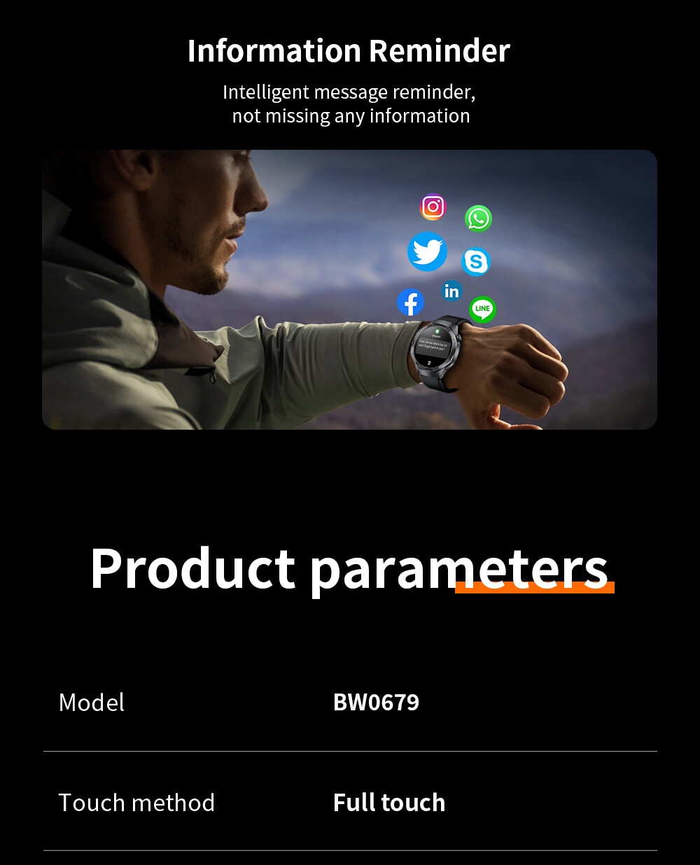 Answer: After connecting the watch to the mobile application, the watch will display information reminders and call reminders