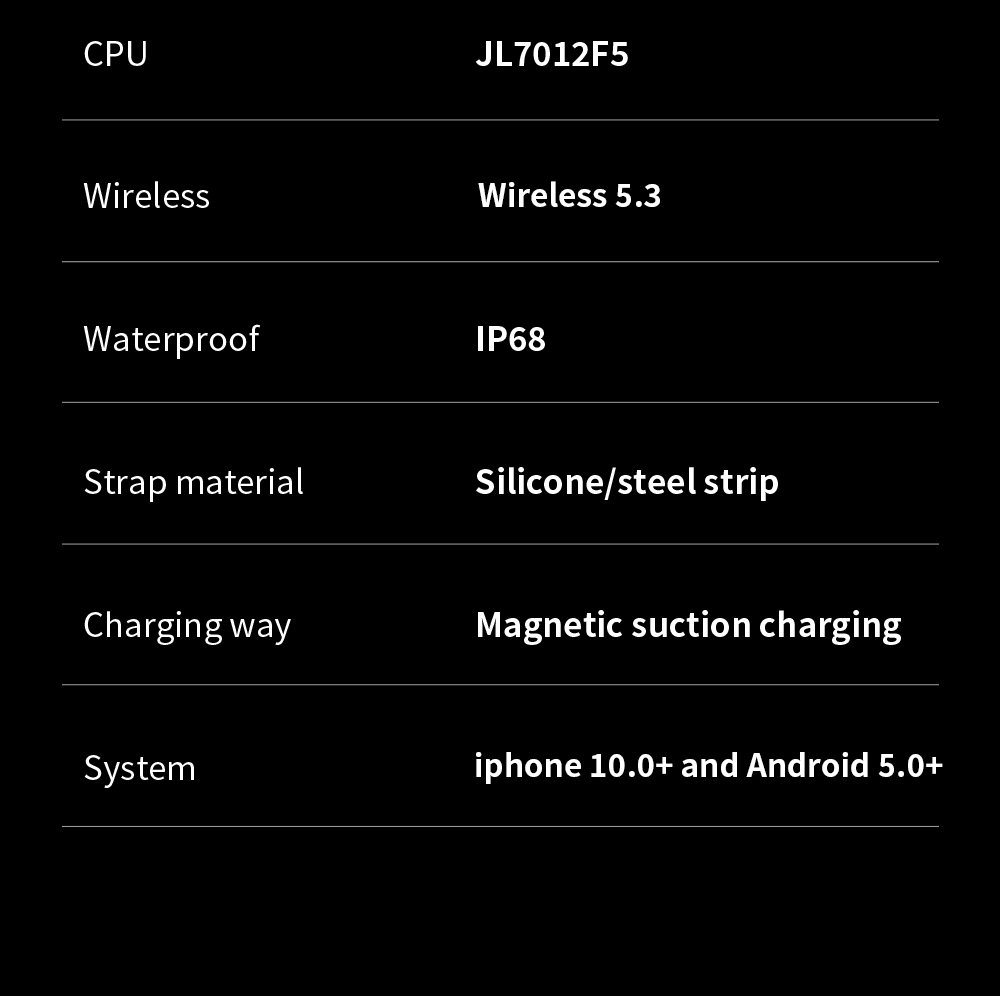 Heart rate, Bluetooth calls, true blood oxygen saturation, blood pressure monitoring, brightness adjustment, breathing training, voice assistant, hand raising the screen, information prompts, LED flashlight, multiple sports modes, weather forecast, clock display, alarm clock, SOS, mini games, calculator, female physiological cycle, music playback, versatile dial, custom wallpaper, sitting reminder, no disturbance mode, search bracelet, remote control photography, sleep monitoring, step counting, distance, calories, other reminders (QQ, WeChat, Facebook, WhatsApp, Line, etc.)