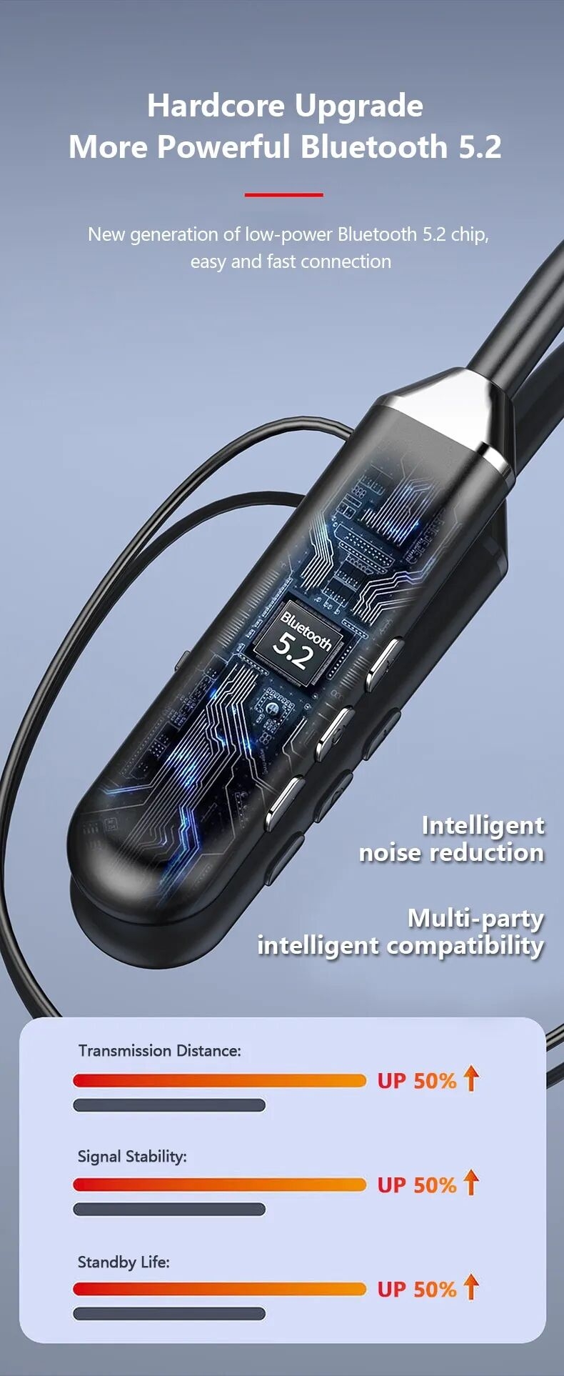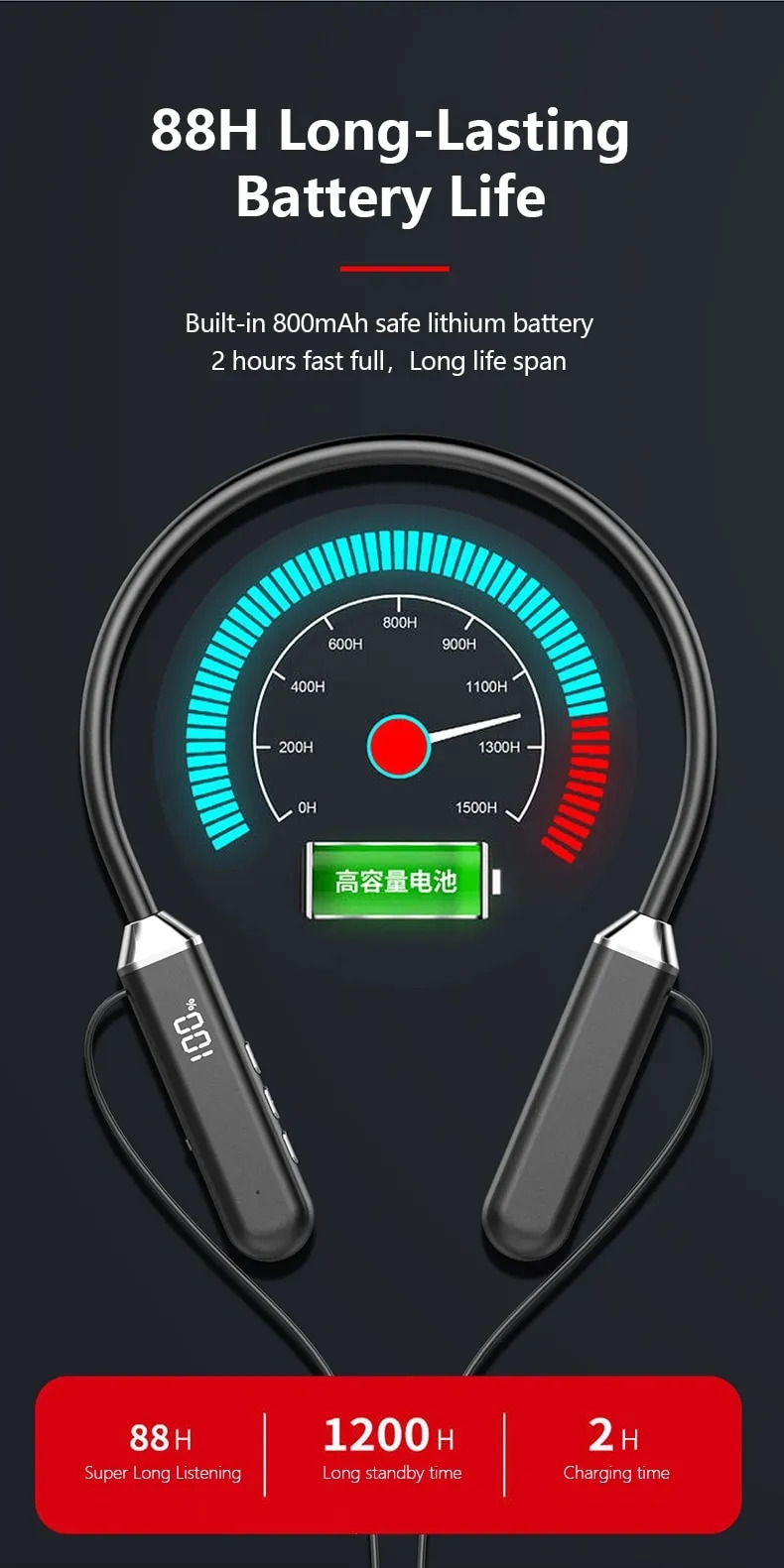 Neckband 5.2 Bluetooth Earphone, Digital Display, Long Standby, Noise Reduction