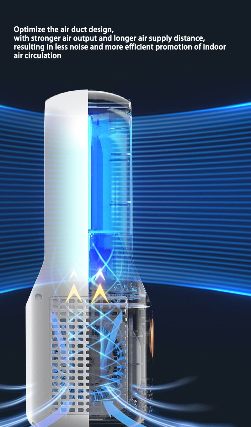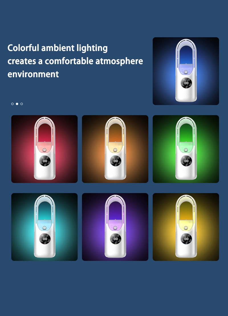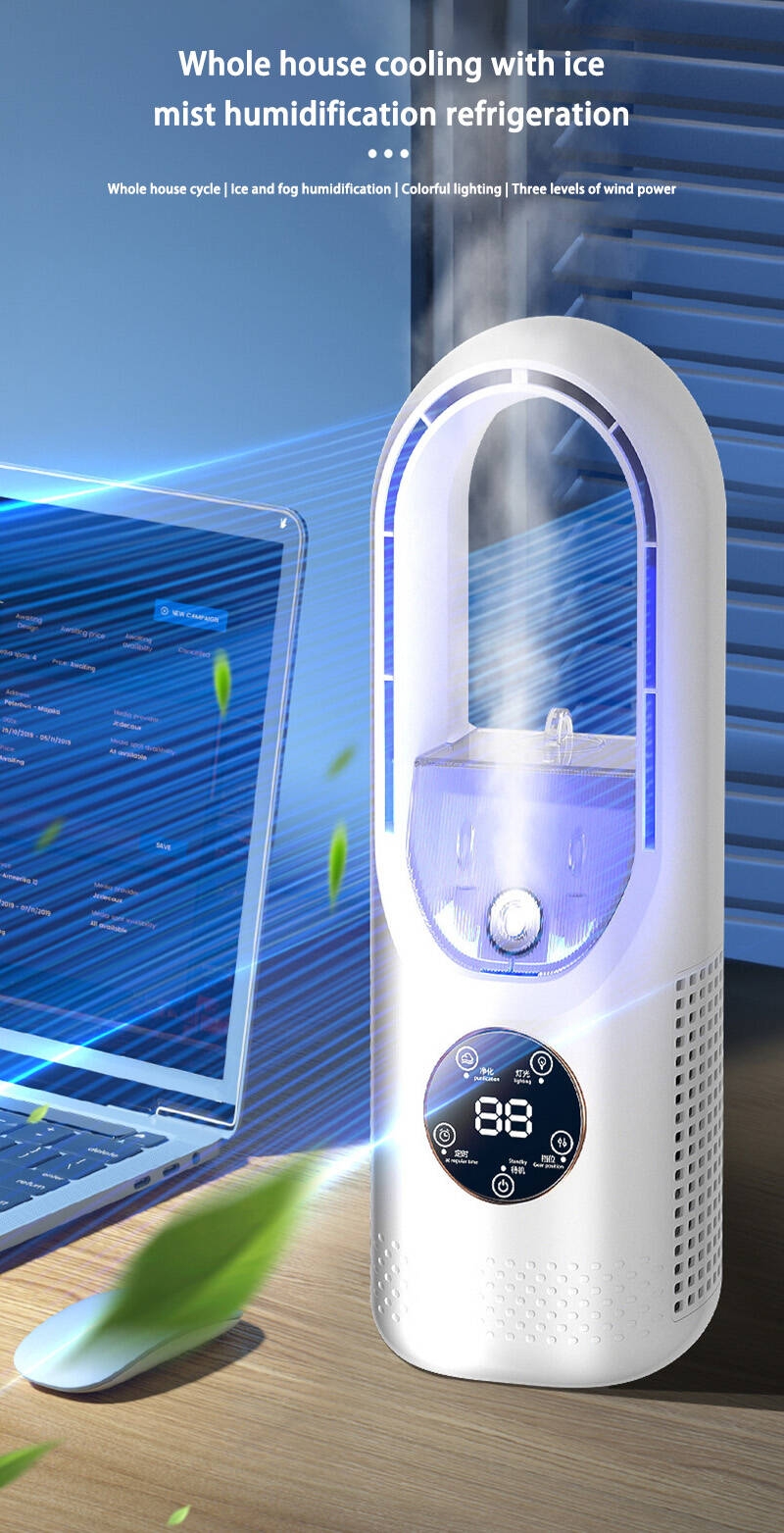 Superior Cooling Technology: Experience unprecedented comfort with our bladeless USB desk fan. Equipped with revolutionary cooling technology, a powerful motor, and faster rotation to provide an intense breeze to quickly cool your surroundings. Say goodbye to discomfort and enjoy a refreshing and relaxing natural breeze at home or at work. (Please note that it requires a 5V/2A power supply to operate under high wind and spray conditions.) Bladeless Design: This air cooler adopts a bladeless design, which is safer than ordinary fans. Unlike other fans that must spin on their own to create an oscillating effect, this air cooler changes the wind direction by rotating the blades counterclockwise or clockwise. This functional design is not only more advanced, but also safer!