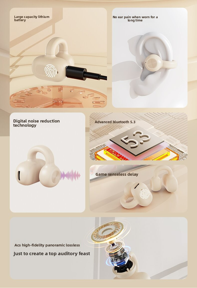 Key Features Transmission Range: 10 Meters Function: Ultra-Long Life Battery, Call Function, Voice Control, Support Music Bluetooth Protocol: 5.3 Usage: Clip-on Single Earpiece/Double Earpiece: Unilateral Hands-Free Color: Light Yellow Type: Pearlized Bag Packaging, Color Box Packaging Mold Type: Private Mold Chip Type: Jerry Battery Life: 4-8 Hours Style: Sports Style Waterproof Performance: Life Waterproof Material: Plastic