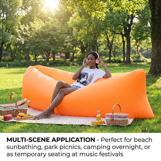 Enjoy instant relaxation anywhere with this innovative inflatable lounger sofa! No pump needed - simply whisk it through the air to inflate in seconds. Crafted from heavy-duty ripstop nylon, it features waterproof, sand-proof, and tear-resistant properties, making it perfect for beach days, camping trips, park picnics, and music festivals. The lightweight, foldable design fits easily in your backpack, while the sturdy construction comfortably supports both solo lounging or sharing with a friend. Your ultimate portable comfort solution for outdoor adventures!