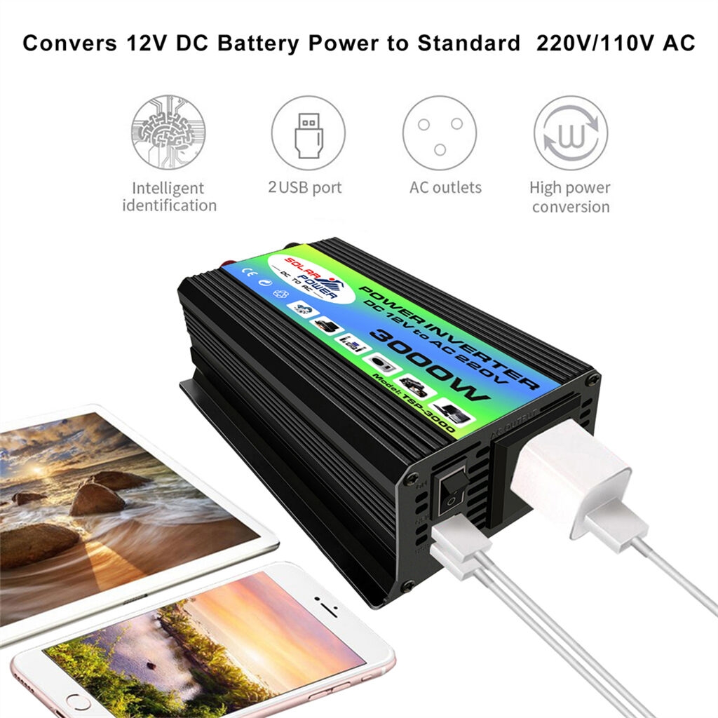 HomeAutomobileCar Electronics & AccessoriesCar Electronics AccessoriesAudio & Video AccessoriesPower InvertersPeaks 3000W DC12V-AC220V Modified Sine Wave Inverter- Black