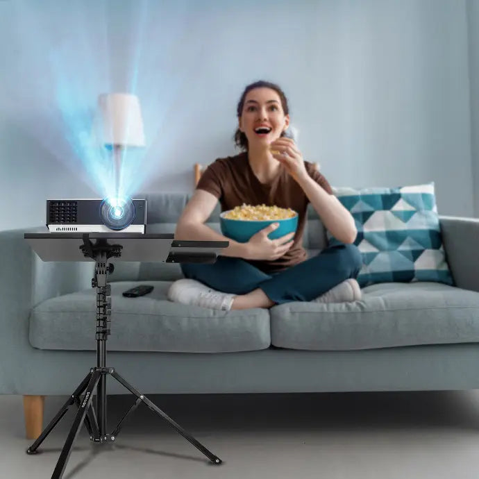 Optimize your workspace with the Porodo Multi-Function Stand. It's designed for both projectors and laptops, and includes a main tray and a mouse tray, supporting up to 10kg of weight.Its adjustable height extends up to 190cm, allowing for comfortable positioning.