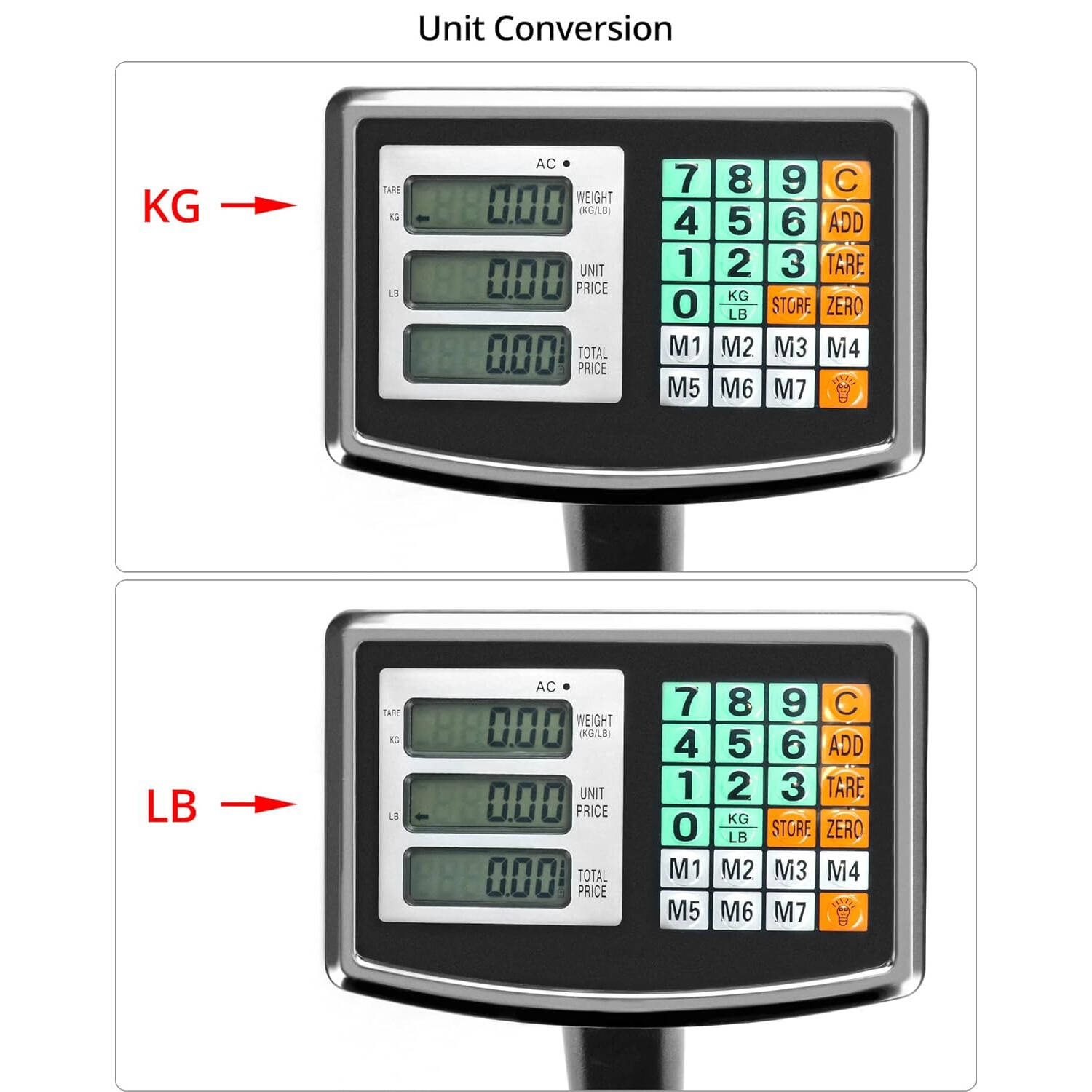 150 kgs Maximum, 1 kg Minimum, 5 M Buttons With unit and total price Calculator Built-in