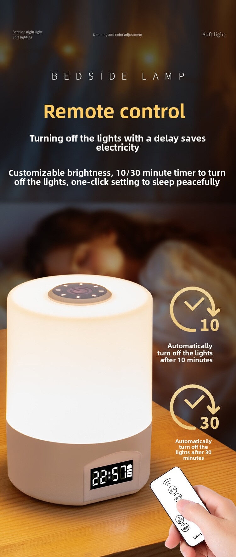 HomeHome & OfficeHome & Office FurnitureLightingDecorative LampBedside LampRechargeable LED Night Light with Time Display - Task Lamp for Bedroom