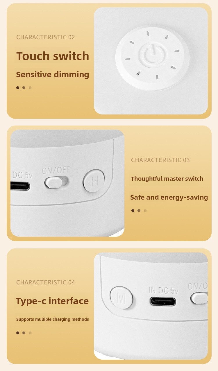 - Light color: rechargeable and plug-in dual-use [touch switch + three color temperatures + stepless dimming]