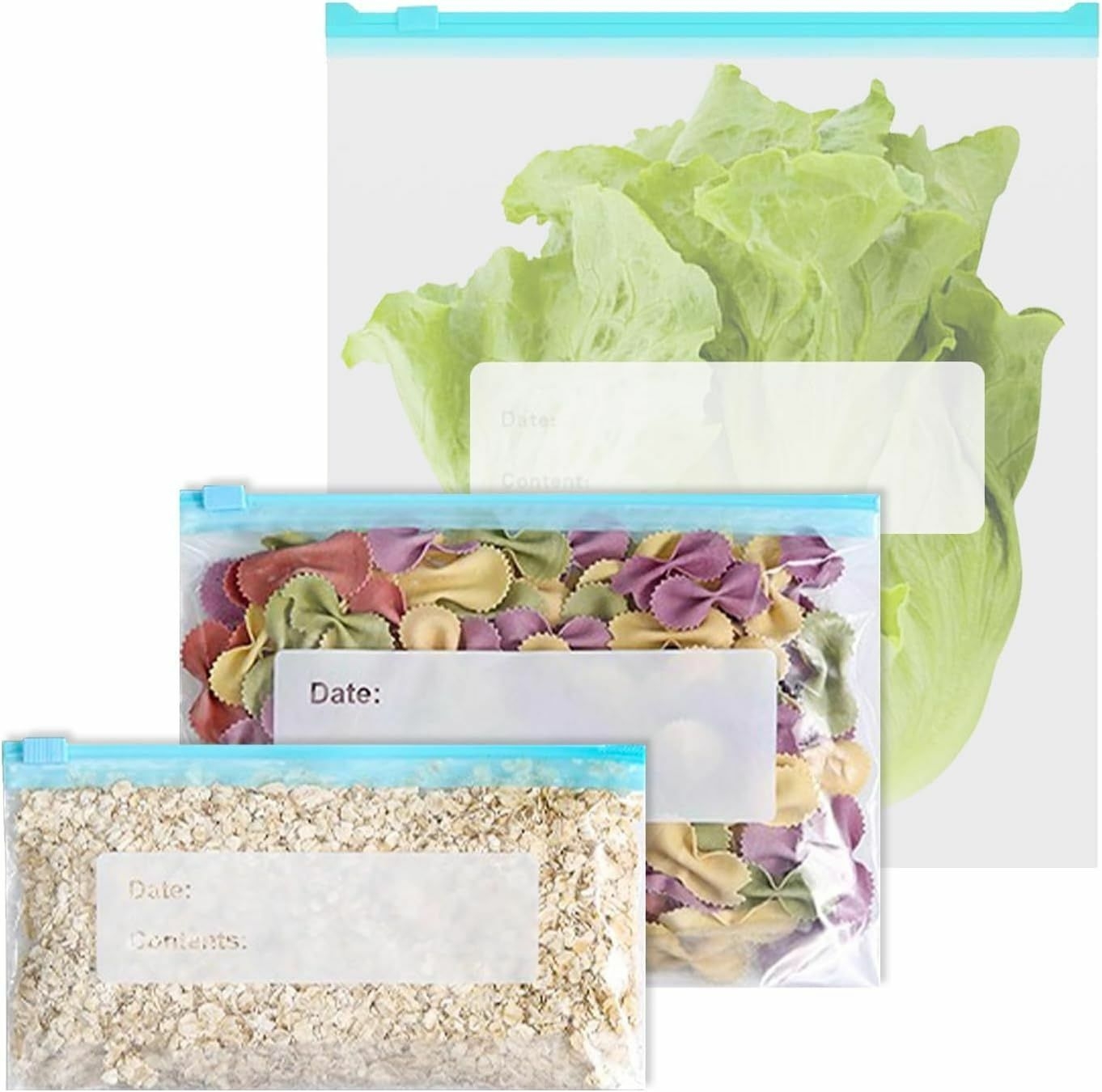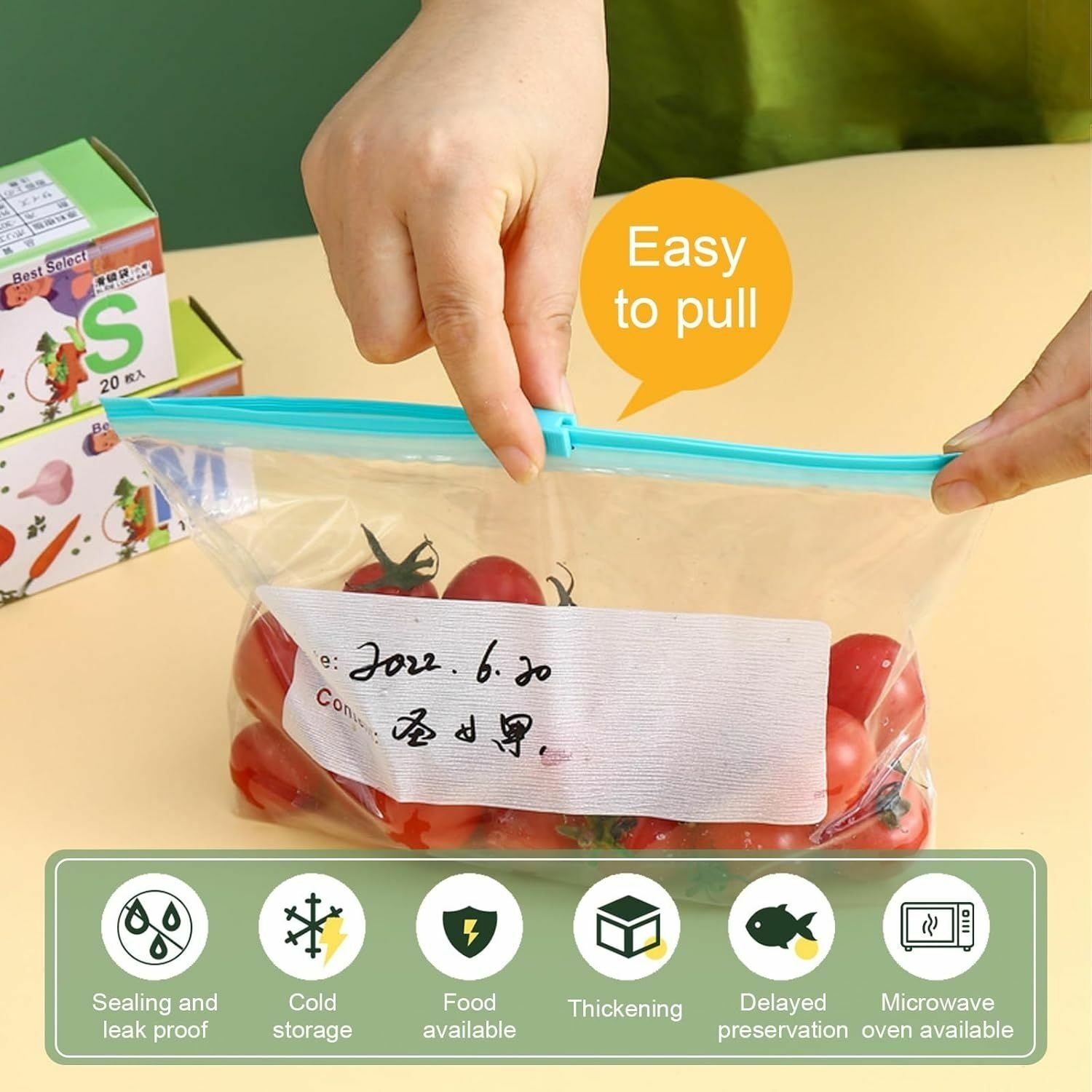 【Reusable Food Bags Set】Get 10 freezer bags with size of 30 * 27 * 4cm; 15 freezer bags with dimensions of 23 * 15 * 5cm; 20 freezer bags with dimensions of 20 * 10 * 4 cm. There are a total of 45 freezer bags that are enough and different in quantity to meet their different needs.