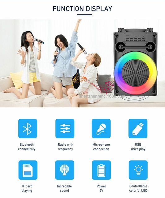 The new portable Bluetooth speaker, with Bluetooth / with radio /usb/tf/mic, dc-5v charging +2018 single power amplifier, box function + no screen /usb non boost / + with charging management IC, key volume ++ with magic lights, magic lights controlled by light keys 18650 flat head bare battery, 3.7v/1200mah single 4 inch power rate: 8W