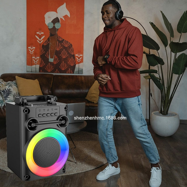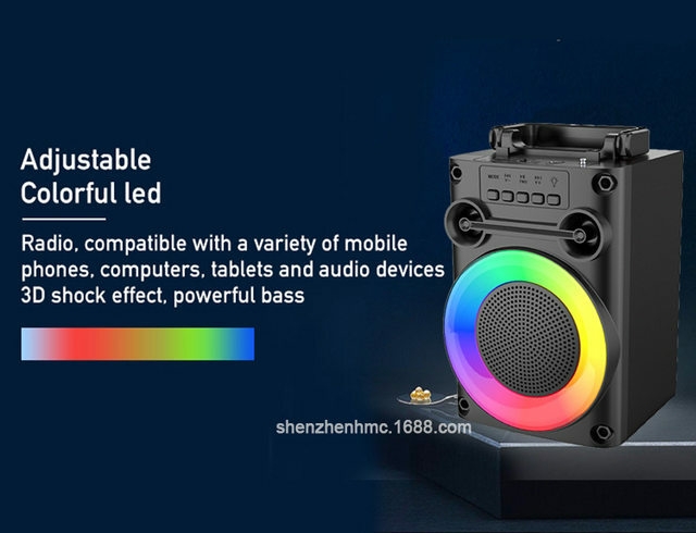 The new portable Bluetooth speaker, with Bluetooth / with radio /usb/tf/mic, dc-5v charging +2018 single power amplifier, box function + no screen /usb non boost / + with charging management IC, key volume ++ with magic lights, magic lights controlled by light keys 18650 flat head bare battery, 3.7v/1200mah single 4 inch power rate: 8W