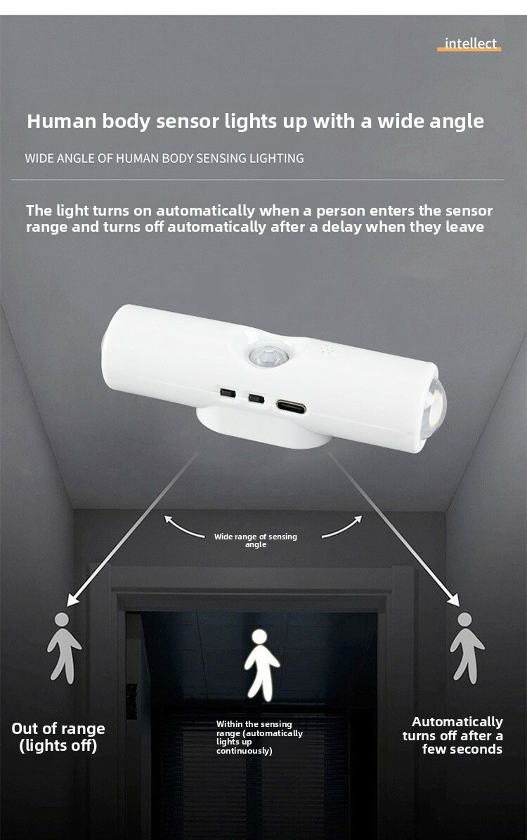 Smart human body sensor lamp spotlight magnetic rechargeable household cabinet wall lamp 5V1w