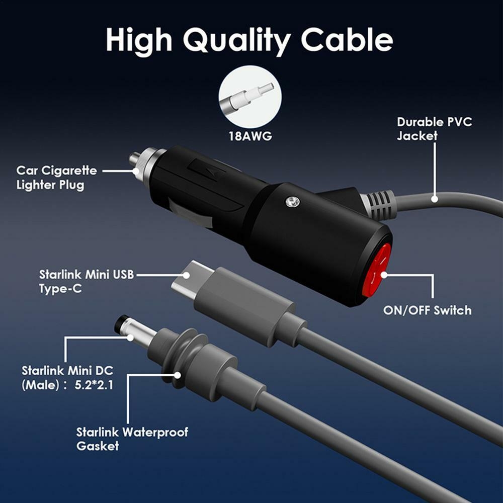 - Compatibility: With a USB-C plug, cigarette lighter plug, and DC plug 3-in-1, this Starlink Mini power cable is all you need for your Starlink Mini power supply.