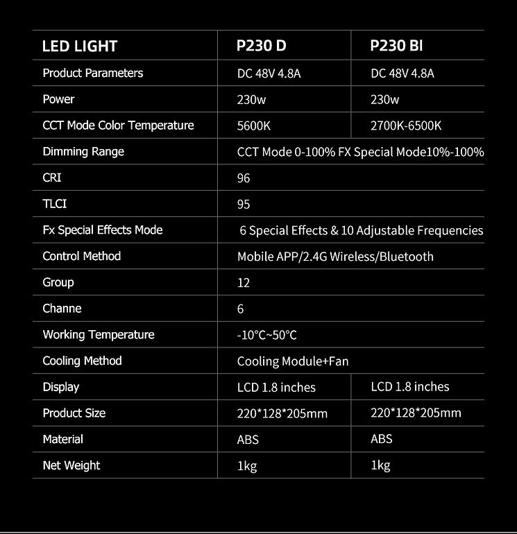 Sutefoto P230bi P230D High brightness Spotlight Continuous Video Shooting Light with app control For Studio shooting