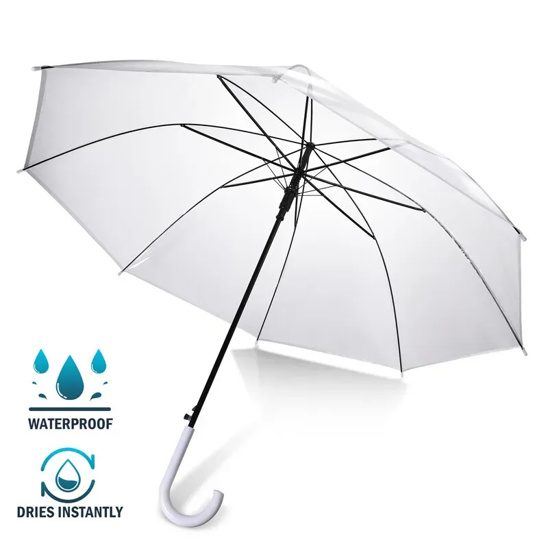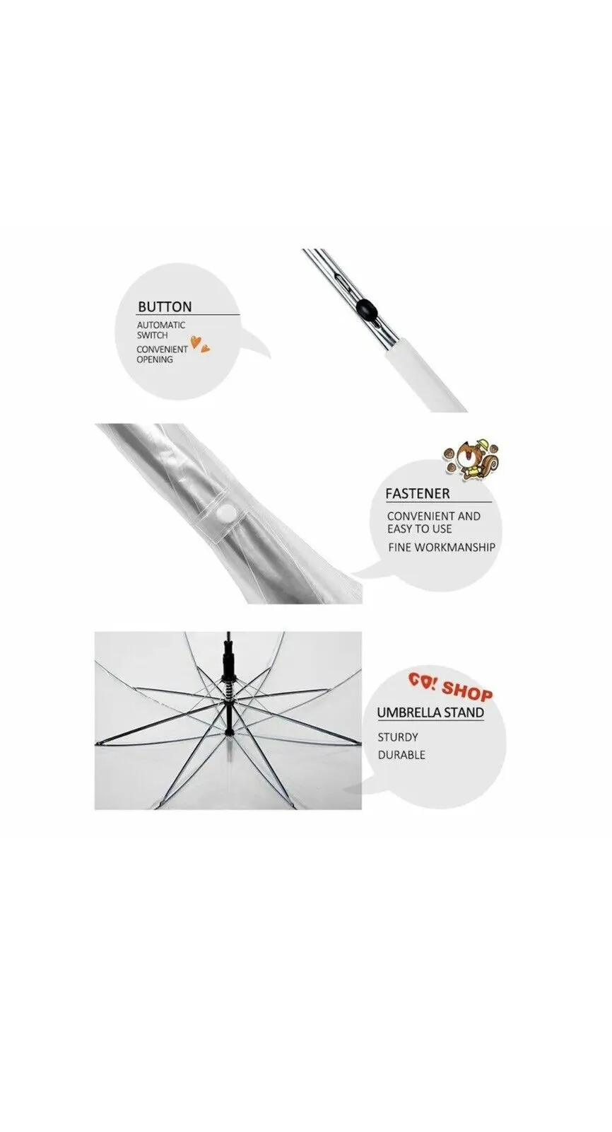 Transparent Umbrella surface is a major bright spot Automatic Open, Convenient and Effortless Umbrella arch can better prevent rain in the wind Not only beautiful but also very practical Strengthened the visibility of walking in the rain