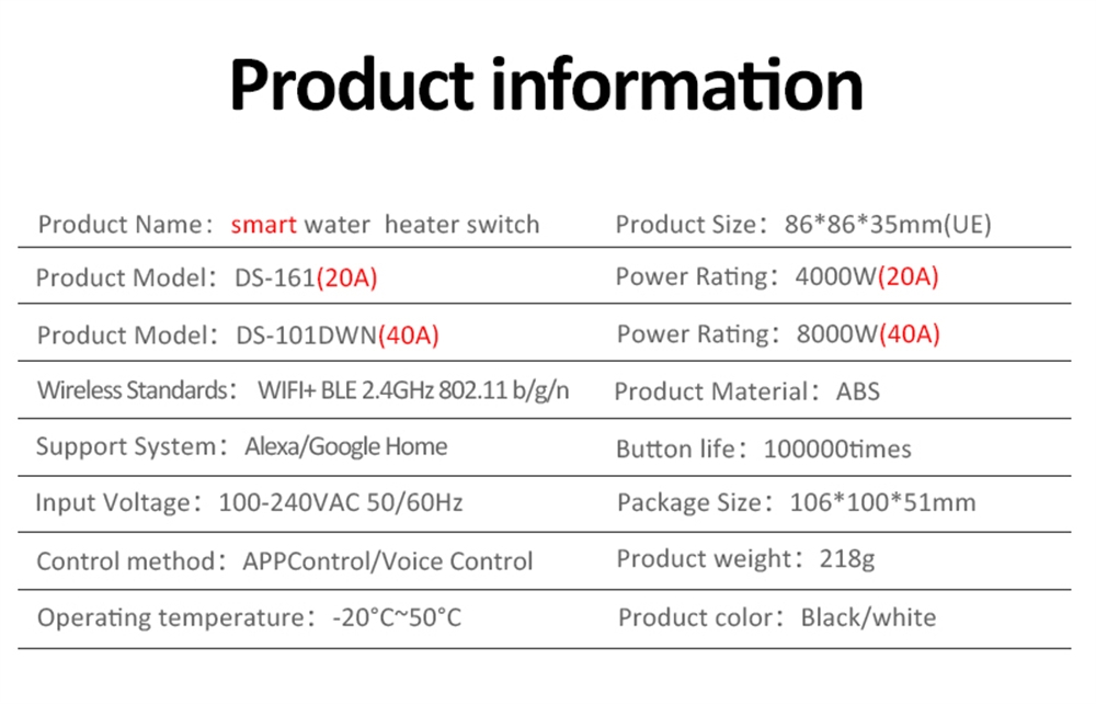 40A - It can be used for water heaters, air conditioners and other high-power equipment. Note the maximum power.