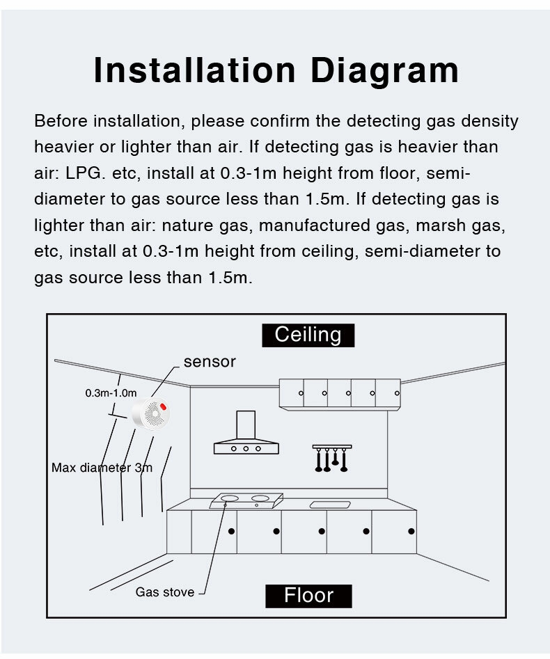 Loud Alarm - When gas is detected, this alarm sensor emits a loud alarm to alert you and your family to the potential danger.