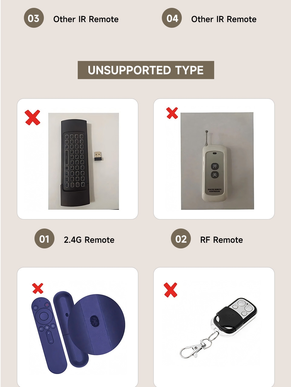 Note: Not compatible with the home appliances which use RF or BLUETOOTH remote control.
