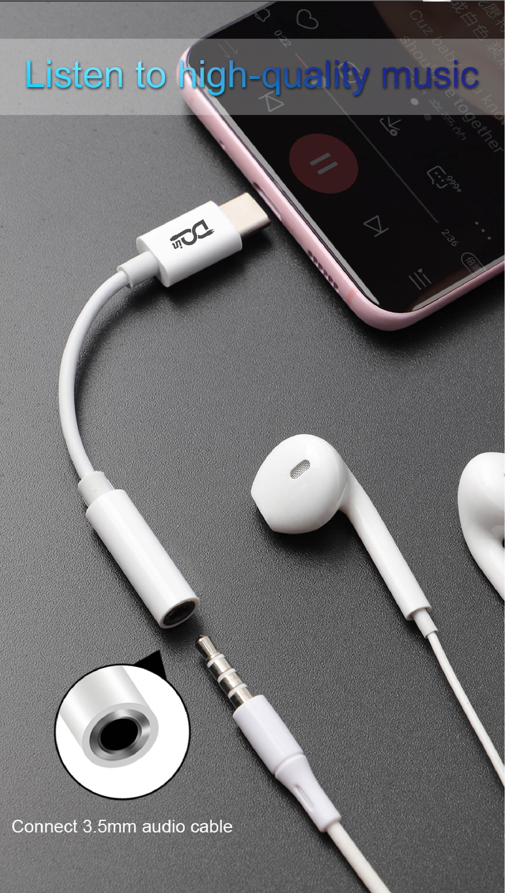 • Model: DQin Type-c to 3.5mm Headphones Adapter