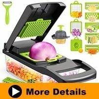 This onion and vegetable chopper dicer is crafted from high-quality ABS plastic for long-lasting durability. Featuring ultra-sharp 420-grade hardened stainless steel blades, it effortlessly chops and dices hard vegetables. The heavy-duty stainless steel blades are sharp enough to cut through most fruits and vegetables with ease. - 8 Interchangeable Blades: