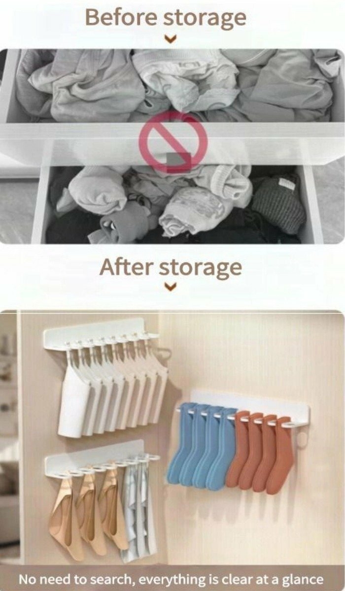 ✨Wall-Mounted Sock Storage Rack | Instantly transform your closet corner into a tidy storage area
