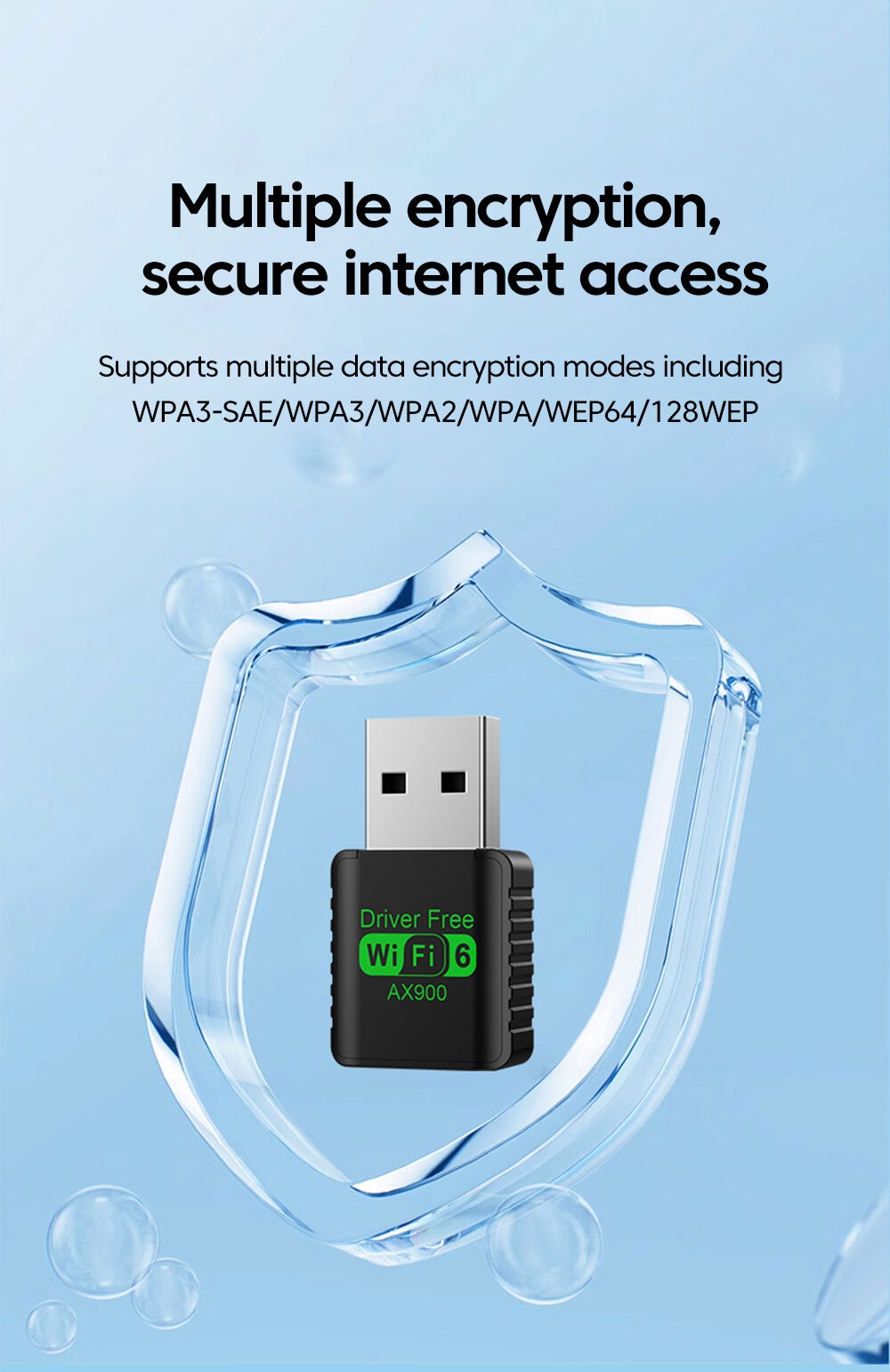 AX900 dual-band wireless USB network card is suitable for wireless connection of desktop PC and other devices, and can provide a convenient and fast way to access the Internet wirelessly. The network card supports automatic detection function and can automatically adjust the rate.