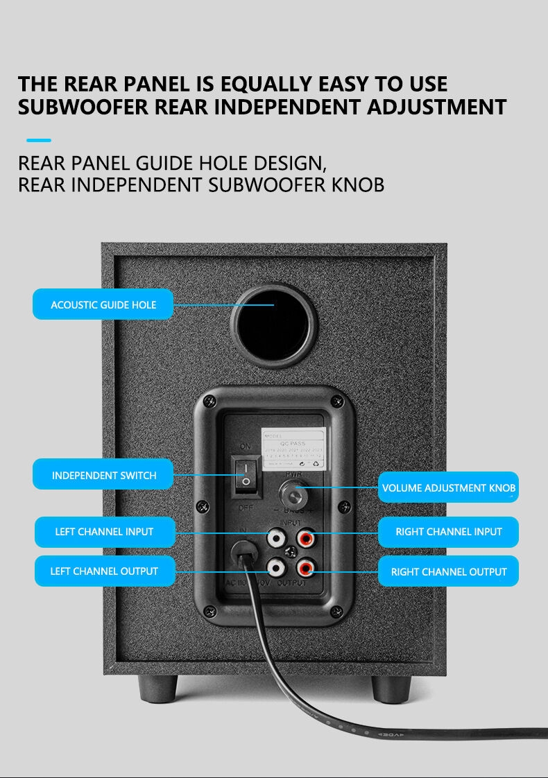 ✔ Sound Quality: The subwoofer and left and right speakers work together to deliver rich, layered sound, providing an immersive listening experience whether listening to music or watching movies.
