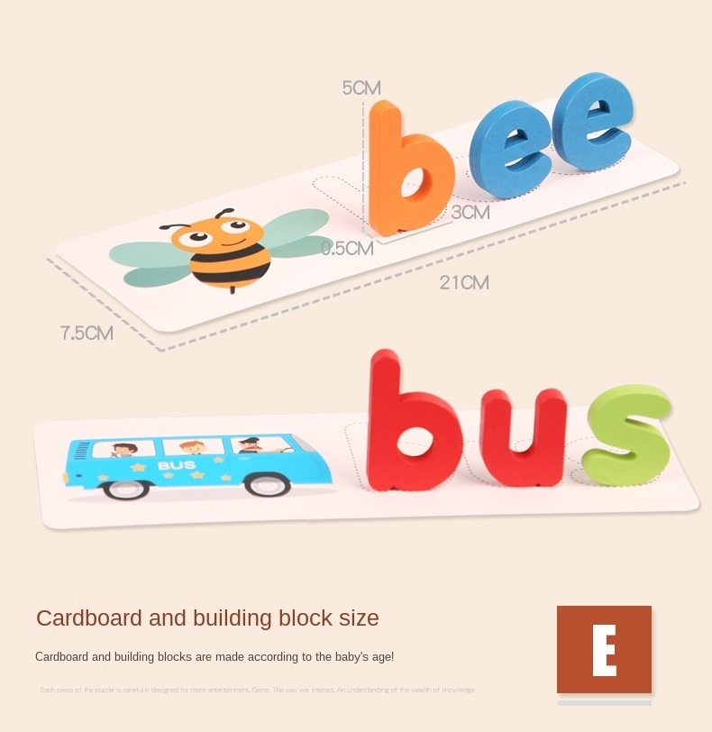 Key FeaturesSpelling games 3C Configuration Whether -Border Export Is Exclusively AvailableYesApplicable Age: Children (4-6 Years Old) AttributesBorder Package WeightUnit WeightProduct VolumeWooden, No, Color Box, Logo Sticker