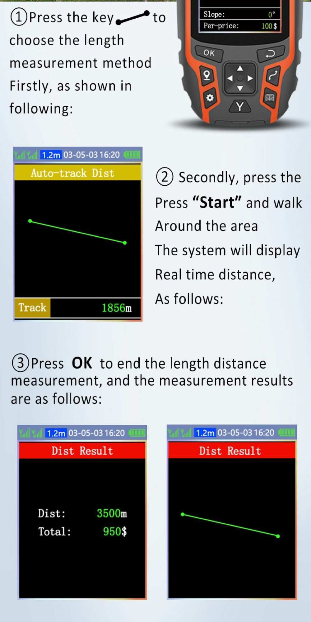 Portable: Land areas measuring instrument ideal for measuring farmland, forest, mountain, lake and other slope area and irregularly shaped area.