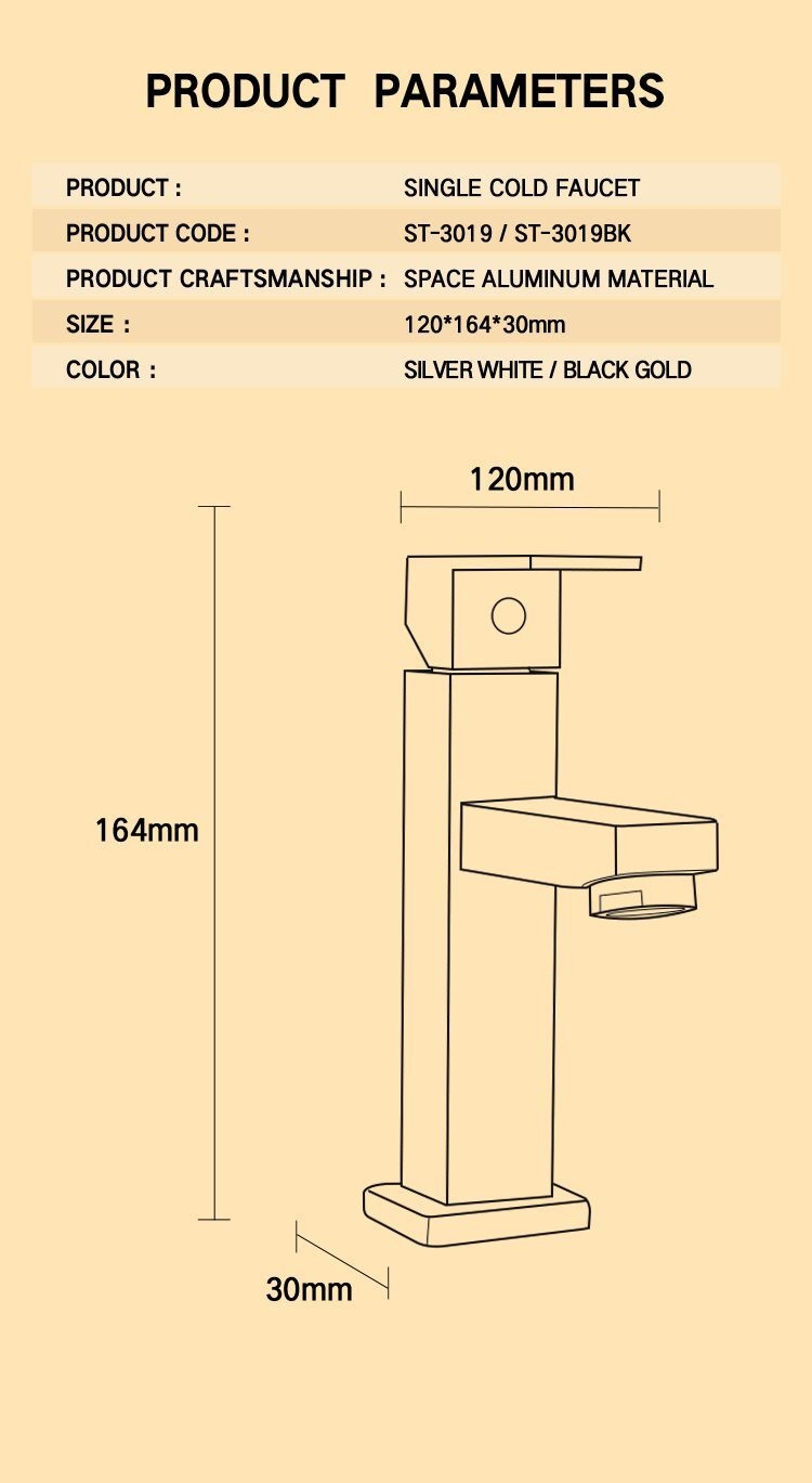 Single cold water design – Simple one-handle control, smooth movement without sticking