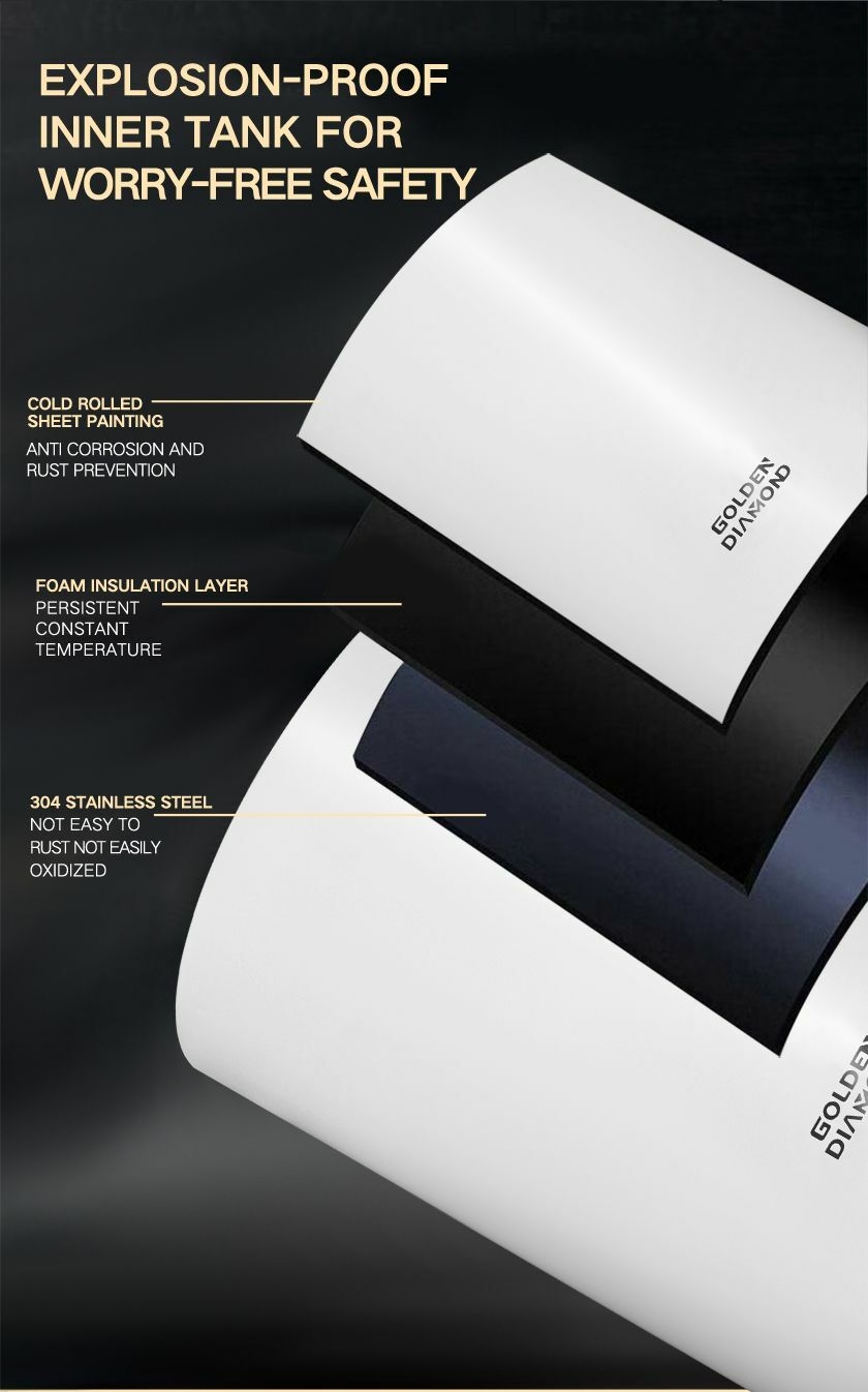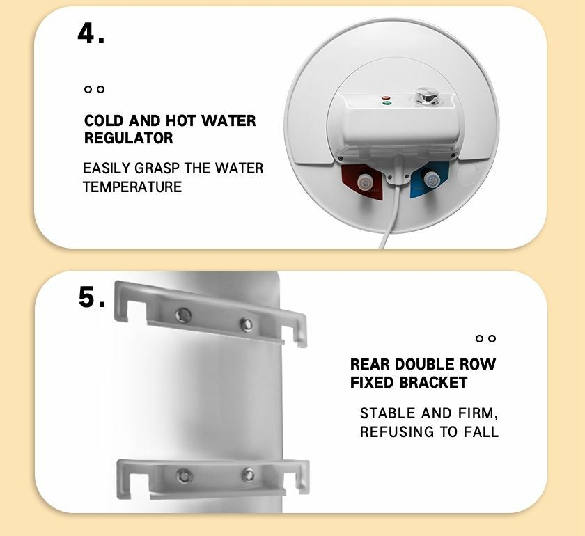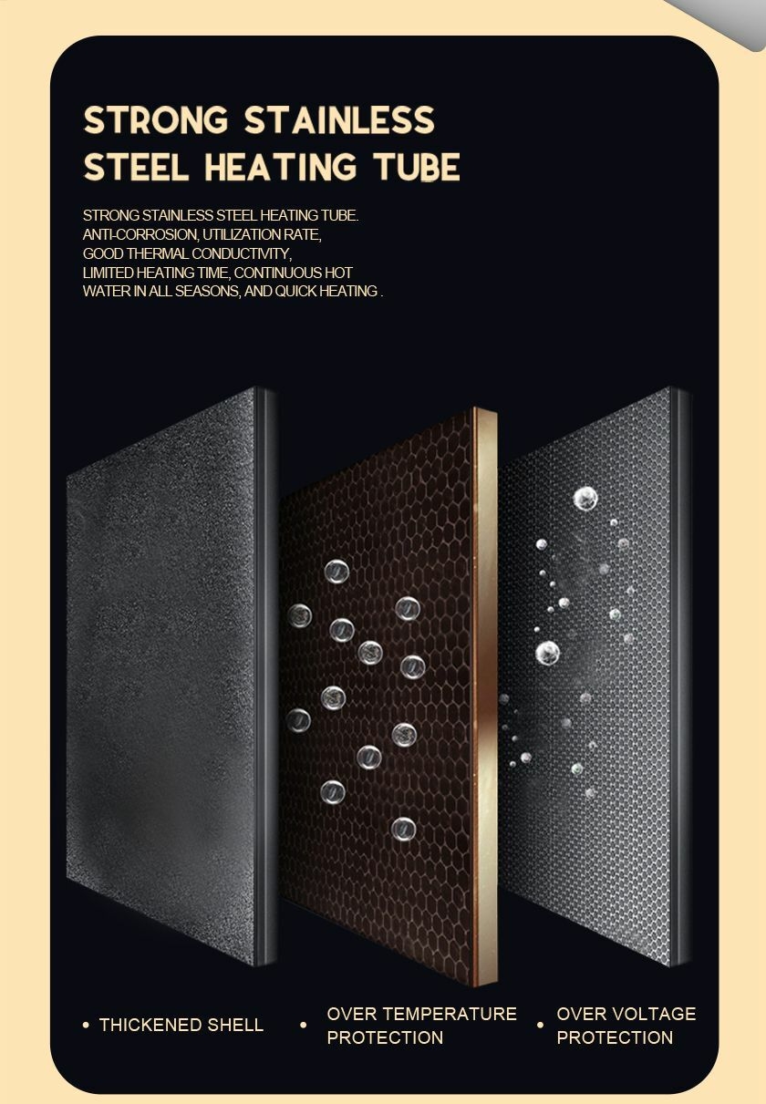 Key FeaturesMade of stainless steel and with Insulation layer Excellent insulation properties and resistant to rust Anti-leakage and explosion-proof plugTemperature adjustment from 30 to 75 degreeDigital display to show the current temperatureTemperature controls automaticallyEnters insulation state while desired water temp reachesResumes heating when water temperature drops Heating indicator light turns off when it automatically turns off Power cord length of 1.5 meters,plugged into a 220V/10A socketInstalled independently in small bathrooms or other locations