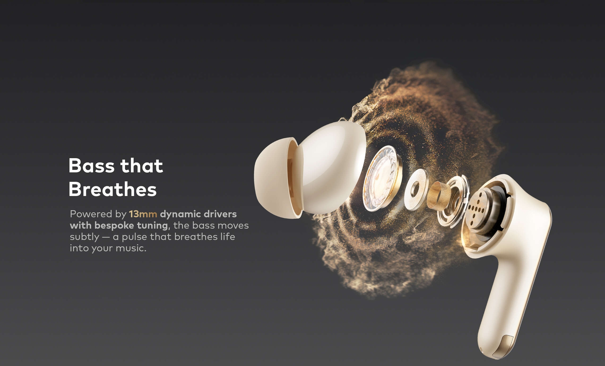 Powered by 13mm dynamic drivers with bespoke tuning, the bass moves subtly - a pulse that breathes life into your music.